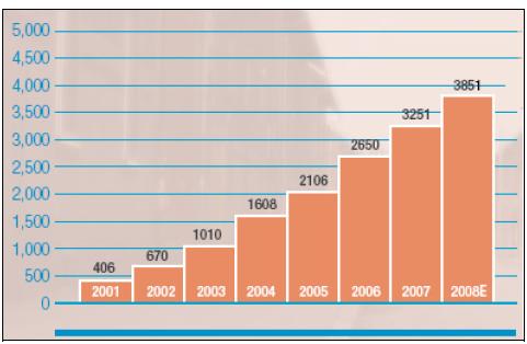 圖表 2001-2008財年鴻星爾克銷售點數目