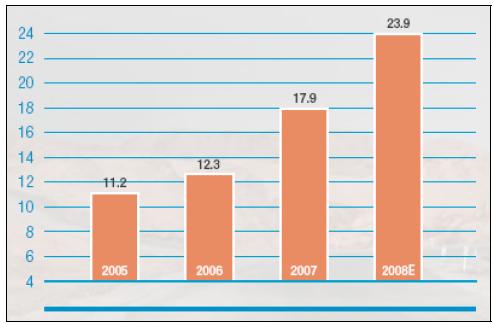 2008年公司的營銷預算還會較過往增加,以前鴻星爾克的營銷預算約占銷售額的13%~14%,2008年營銷費用可能會占到整個預算的15%左右。