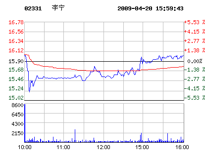 4月20日李寧股票行情走勢(shì)