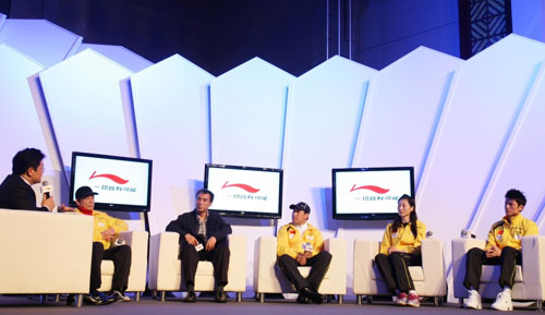 發布會現場,難得一聚的五代羽球人暢所欲言,在回顧中國羽毛球輝煌歷史同時,一同展望羽毛球運動未來的發展趨勢。而國家體育總局乒羽運動管理中心主任劉鳳巖與李寧公司首席執行官張志勇一同和現場的羽毛球權威人士就如何推動中國羽毛球事業發展進行了探討。最后,李寧先生還為李永波總教練和隊員們贈送了特別禮物—— 一支羽毛球金拍,祝愿中國羽毛球隊延續輝煌,實現包攬奧運五金的目標與夢想。現場的羽毛球界人士普遍認為:中國運動領導品牌和世界最頂尖的中國羽毛球運動隊走到了一起,這個聯合無疑會使中國羽毛球事業煥發全新的活力。[評李寧裝備與服務 林丹坦言很貼心]