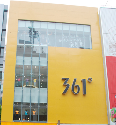 【中國鞋網(wǎng)】 2009年5月1日上午9點18分,361°全國最大品牌概念店登陸成都春熙路。成都品牌概念店是361°六代店鋪的全國典范之作,整個概念店由德國著名設(shè)計師設(shè)計,共分六層:一層為男裝區(qū),2層是女裝店,3層工廠店,4樓為員工培訓(xùn),5-6樓集健身休閑娛樂為一體。此次成都品牌概念店的落成,將引領(lǐng)著當(dāng)?shù)伢w育用品領(lǐng)域的新走向。