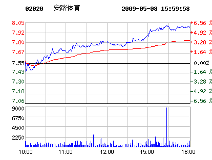 鞋企股市:5月8日安踏體育股票行情走勢