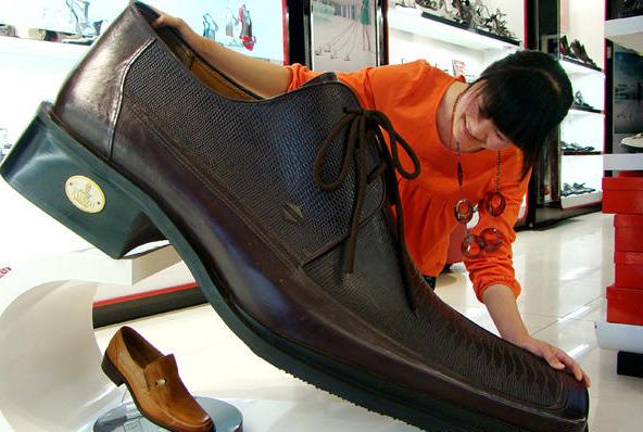 江蘇連云港市某商城皮鞋經銷商展出一只長140厘米、寬66厘米、高50厘米、重達60多公斤的男式巨型皮鞋,吸引了眾多顧客駐足觀看。這只皮鞋使用上等牛皮制作,鞋底為牛筋底,是由工人手工制作而成的。