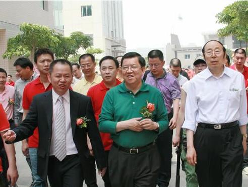 左:福建金邁王鞋服制品有限公司董事長張文彬 中:博鰲亞洲論壇秘書長、中國入世談判首席專家龍永圖 右:中國輕工業聯合會副會長、中國皮革協會名譽會長徐永