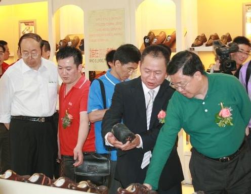 在金邁王董事長張文彬及石獅市黃南康、黃水源等市領導的陪同下,龍永圖和徐永一行參觀了金邁王公司,龍永圖對石獅皮鞋濃厚的商務休閑特點、優秀的產品品質和大膽的創意給予了高度評價。