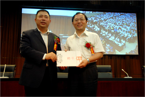 演講結束后,經濟學院院長徐長生與王振滔互換聘書,奧康集團聘徐長生為特聘教授,王振滔受聘經濟學院創業導師。 華中科技大學副校長楊勇還代表校方與奧康集團旗下的中國鞋業第一所企業大學奧康大學簽定了全面戰略合作意向協議,雙方將在人才培養、創業就業、科研開發以及管理創新等領域達成全面戰略合作關系。