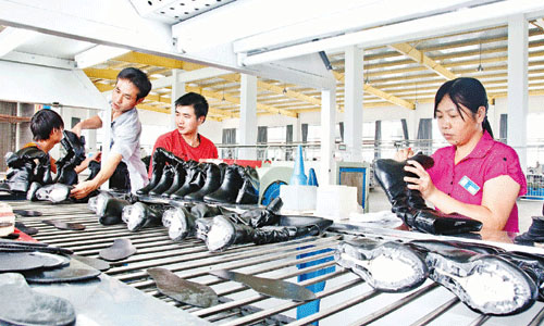 中國鞋網09月02日訊 浙江迪奧實業有限公司生產的高檔休閑鞋主要銷往美國、加拿大、法國等國家。嚴峻經濟形勢倒逼企業更加注重產品質量和創新,目前企業銷售形勢良好,訂單排到了11月份。圖為該廠生產線一角。