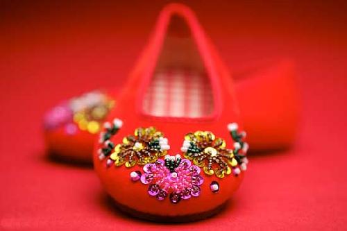 一雙制作精美的繡花鞋網(wǎng)絡(luò)售價(jià)為100美元至300美元不等