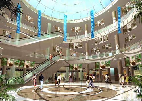 隨著人民生活水平和文化素質的提高,消費、購物不再僅僅為滿足物質生活的需要,而是將購物視為集購物、休閑、娛樂、旅游、觀光、社交、文化交流為一體的一種精神享受過程,于是集多種功能于一身的規模龐大的新型商業模式-----〖Shopping Mall〗現代購物中心應運而生,成為都市人的生活樂園,F代超級購物中心是由開發商統一規劃,在經營機構的統一管理下,由眾多經營商戶集中經營多種商品或服務的大型的、多功能的、綜合的商業模式,它是社會發展和經濟發展的必然產物。明珠廣場將商業、酒店、辦公、會展等業態組合于一身;把購物、休閑、娛樂、社交等功能聚合于一體,并在各分部間建立一種相互依存、相互助益的能動關系,以提高各種商業活動的效率,從而在承受較高物業租金的同時降低了綜合商業成本。明珠廣場將諸多商業功能集中于6萬平方米的巨大建筑體內,以貫通的大型中庭共享空間,催化各商業功能的復合,并在共生、互利的前提下,實現多功能的互動,從而提高自我調節和調整能力。具體表現為:一是各種功能互為補充,在一定范圍內實現自給自足,形成“店中店”、“街中店”的經營模式;二是各種功能互為裨益,相互提供發展的潛力,呈現購物與休閑并舉,餐飲與娛樂并重的局面, 反過來促進自身的增長。明珠廣場購物中心的建筑格局,整體對稱,大空間大進深,使街區室內化,商場室外化,中庭廣場化,購物休閑化,完全是現代商業頂級典范。