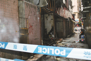 失火店鋪位于泥崗村內一條熱鬧的商業街上,接到報料后,記者趕到了事發現場。記者看到,警方圍繞起火店鋪拉起了警戒線。透過店門口的卷簾門可以看到,店內已被大火燒得面目全非,柜臺等均已變色,依然可聞到一股燒焦的味道。鞋店樓上幾戶人家的窗戶也被熏得烏黑。