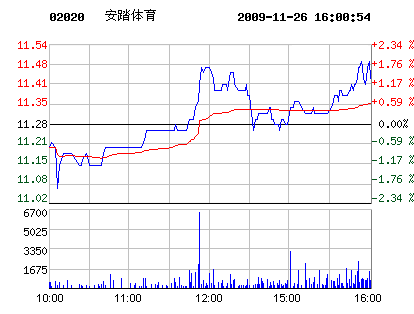 11月26日安踏體育股票行情走勢