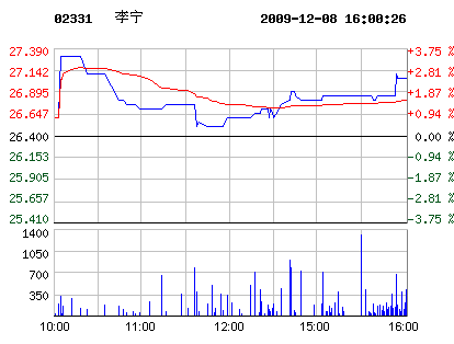 12月08日李寧股票行情走勢