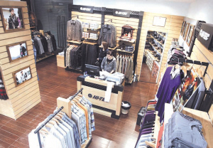 海泰客(HI-TEC)定位是中檔都市休閑男裝,針對28~35歲,具有較好的經(jīng)濟收入和鮮明的男性品格,熱愛旅行的消費群體。它的表現(xiàn)手法是戶外生活風(fēng)格,粗獷且時尚,特別強調(diào)科技帶來的感受。所以,海泰客(HI-TEC)終端展示傳承了英倫血統(tǒng),延續(xù)高雅的樸實無華,以自然木色和灰黑色為主調(diào),暖燈輝映,簡約內(nèi)斂。