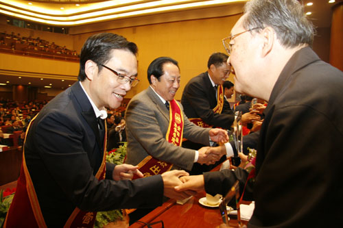 中國(guó)建筑業(yè)協(xié)會(huì)會(huì)長(zhǎng)鄭一軍為錢金波頒獎(jiǎng)