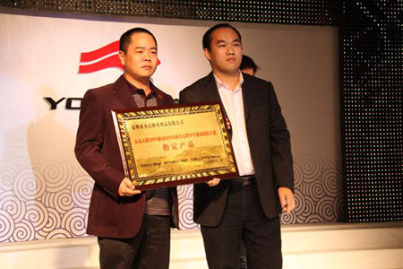 在永高人舉辦會議的當天,遠在幾千里外的首都北京,永高人冠名贊助的“2009新動向中國體育品牌少年模特大賽”的總決賽也在同步進行中。值此兩次盛宴同時異地舉行之際,模特大賽組委會特地委托福建童鞋產業協會秘書長謝家聲親臨會場為永高人授牌。