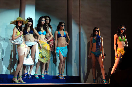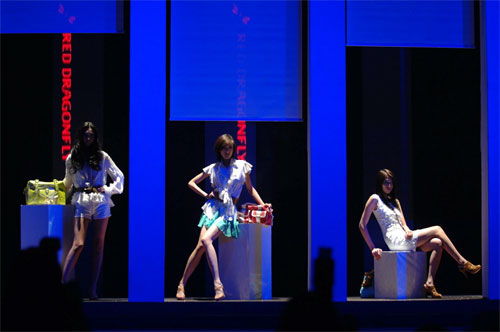在潺潺流水聲中,一場饕餮盛宴開始上演。以生命的發源地海洋為靈感來源,RED DRAGONFLY(紅蜻蜓)帶來的又回藍海岸主題產品秀分成海底尋夢、夢幻海洋、回歸海岸三大篇章,各個篇章環環相扣,將2010年春夏流行新 品純凈、多彩、充滿藝術氣息的特點演繹無遺。