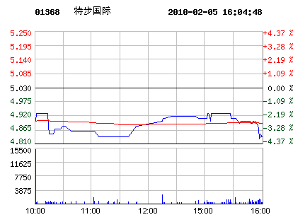 02月05日特步國際股票行情走勢
