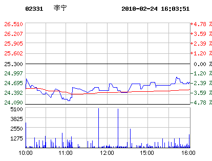02月24日李寧股票行情走勢