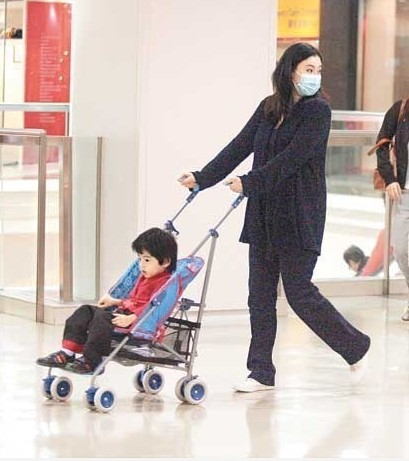 張柏芝一身休閑鞋服帶Lucas逛街