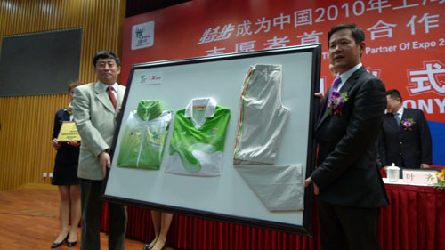 我國著名運動品牌特步成為2010年上海世博會志愿者首席合作伙伴
