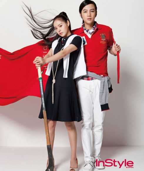 張根錫休閑白鞋與閔孝琳為服裝代言