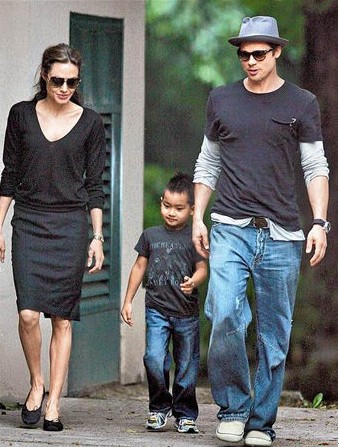 皮特朱莉休閑鞋服出游 到處炫耀8歲天才兒