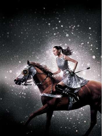 中國鞋網(wǎng)03月31日訊,陳法拉為四月二十五日于沙田馬場舉行的“愛彼表女皇杯”拍攝電視廣告片及宣傳海報,今年的主題為“全城星現(xiàn)放盡閃”。拍攝宣傳海報當(dāng)日,陳法拉束起馬尾,身穿度身訂做的銀色連身短裙,戴上銀色腰封,再配上長靴,型格十足。法拉更要騎在道具馬上,俯身向前作騎馬狀,雖然她從未接受過騎術(shù)訓(xùn)練,但經(jīng)過馬會專人細(xì)心指導(dǎo)正確的騎姿后,法拉雙腳踏在馬鐙上,右手拉馬韁,左手執(zhí)馬鞭,一副英姿颯颯的騎師模樣。