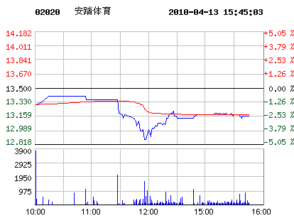 04月13日安踏體育股票行情走勢
