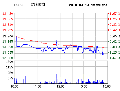 04月14日安踏體育股票行情走勢