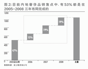 硬幣的另一面則是,越來越多的歐美奢侈品牌期待在中國市場上淘金,在先期到來者仍在對消費者進行教育與培養時,市場競爭加劇卻已是不爭的事實。波士頓咨詢公司的調查顯示,截至2008年底,內地市場目前的奢侈品銷售點中,有53%都是在2005-2008這三年完成布局的(圖2),而2009年的步伐更是有所加快。如今,上海和北京兩個城市人均擁有的奢侈品銷售點數量已經與紐約和芝加哥的水平相當,而如果單以鐘表的銷售點來衡量,國內兩大城市的人均銷售點保有量甚至略高于發達國家。并且,奢侈品牌的戰火已經越來越呈現向二、三線城市轉移的勢頭。奢侈品牌之間更為激烈的競爭體現在,中國消費者缺少其他市場消費者所共有的品牌忠誠度。因此,奢侈品牌需要更頻繁、更貼合中國消費者的營銷活動來不斷提醒消費者自己獨特的品牌形象。