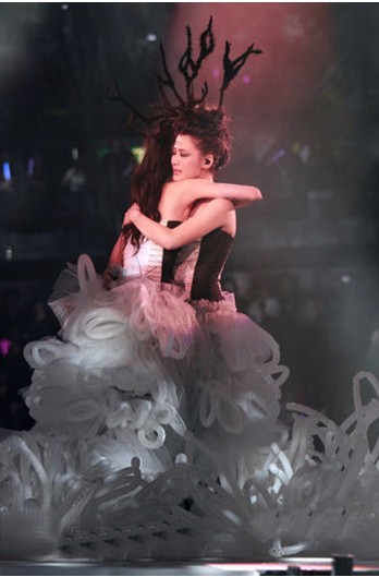 穿著印有彼此人物像的衣服演唱