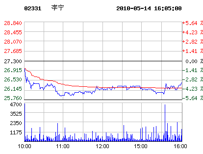 05月14日李寧股票行情走勢