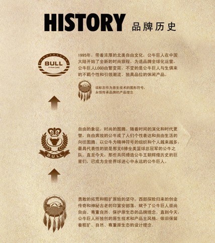 印第安部落的原始生活形態(tài),為BULL產(chǎn)品研發(fā)部門提供了豐富的研發(fā)素材,并由此誕生了公牛巨人獨(dú)步休閑業(yè)界的原生技術(shù)。公牛巨人品牌以遵循自然、舒適柔和、健康環(huán)保的原生技術(shù)內(nèi)涵,向大眾傳播講究身心健康、充滿活力、愛護(hù)生態(tài)環(huán)境的消費(fèi)文化,推崇集個(gè)性、時(shí)尚與原生態(tài)健康休閑文化于一體的理想生活方式。