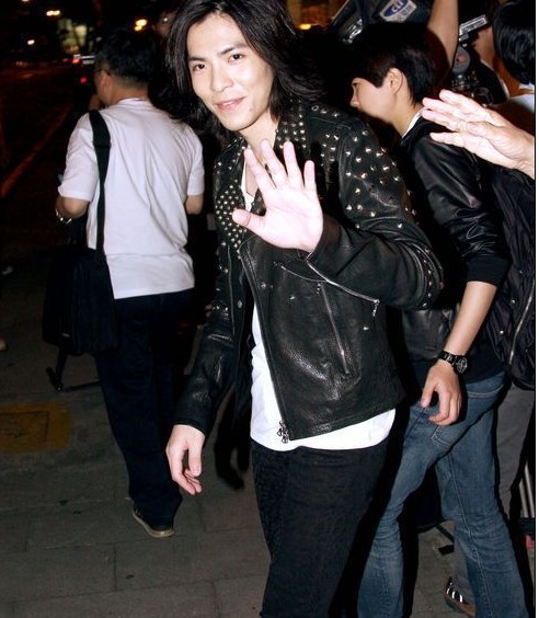 蕭敬騰著黑色鉚釘皮衣黑色高幫鞋現身