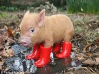 中國鞋網6月11日訊, 紅女孩你看得多,紅鞋小豬你看過沒?英國格羅斯特郡、牛堻郡等地區日前遭大雷雨侵襲。不到一小時內,積水盈寸,滿地泥濘。位在德文郡一處農莊的主人,為怕他心愛的迷你豬克萊夫(Clive)被泥巴被弄得臟兮兮,特別為它穿上紅色。