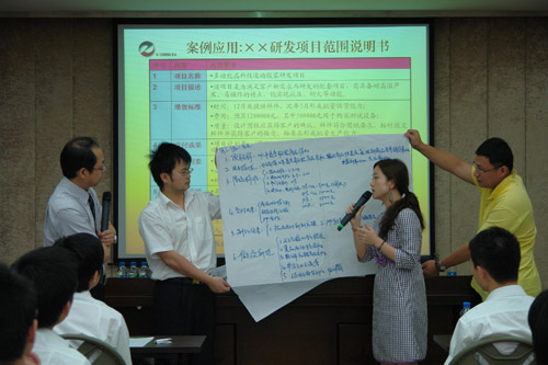 課程中,他還重點分享交流了項目管理的基礎和核心——范圍管理。培訓現(xiàn)場,學員們被分成6組進行了“編寫項目范圍說明書”、“分解項目工作結構”、“項目工作清單列舉”等內(nèi)容的模擬演練。在項目范圍說明書演練環(huán)節(jié),一些學員編寫的“2010年夏季服裝庫存消化”、“福州市場開發(fā)”、“端午節(jié)促銷”等項目得到了大家的充分肯定。