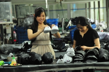 中國鞋網7月12日訊,昨(11)日下午,記者走進蓬安工業園區的南充興宏鞋業有限公司生產車間,只見上百名工人正在忙碌地對鞋面進行加工,并將加工好的各種部件進行有機組合,生產出終端產品——款式各異的鞋子,整個車間一片繁忙。從今年開始,該公司開始生產成品,主要生產涼鞋、皮鞋、休閑鞋等8個品種。目前,每個月有9萬多雙成品鞋銷往美國、加拿大、日本等15個國家。