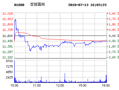 7月13日百麗國際股票行情走勢(shì)