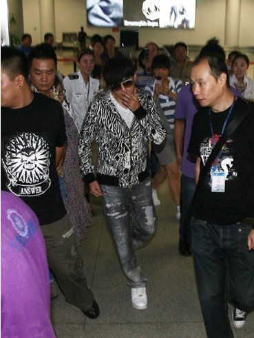 中國鞋網(wǎng)07月31日訊,昨日,周杰倫乘飛機(jī)抵達(dá)青島流亭機(jī)場,前往下榻酒店。眾多周董的粉絲在機(jī)場迎接周杰倫的到來。周杰倫身穿破洞牛仔褲和搖滾風(fēng)上衣潮范兒十足,不時(shí)揮手致意粉絲,身邊壯碩保鏢護(hù)駕,天王范兒十足。