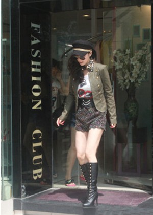 中國鞋網8月3日訊,《全城戒備》中張靜初演繹了功夫了得的打女形象,在片中上演跳高樓、走鋼絲等危險動作。她在片中的造型非常時尚,經常戴著雷朋眼鏡,穿軍裝褲。在今天的首映式上,身著黑色軍帽、墨綠色軍裝上衣和短褲的張靜初一出場就讓所有的觀眾眼前一亮。