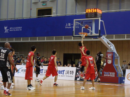 中國鞋網(wǎng)8月10日訊, 離開武漢,2010沃特晃過天空中國街球之旅終于來到了最后一站—上海。上一場(chǎng)比賽,STREET CHINA原本擁有非常好的機(jī)會(huì)打敗S.K.Y.,尤其是第三節(jié),依靠BILLY的出色發(fā)揮,曾一度將兩隊(duì)的比分縮小到兩分,可惜最后時(shí)刻,球員們的年輕急躁讓S.K.Y.屢次站上罰球線,最終輸?shù)袅吮荣悺6驮谏虾?倹Q賽開始前3天,萬眾期待卻又因護(hù)照丟失無法參加北京和武漢站比賽的“扣籃神話”Mr.720卻悄然抵滬,在賽事組委會(huì)的多方努力下,Mr.720在美國火速辦理了入境手續(xù),參加沃特晃過天空上海總決賽。