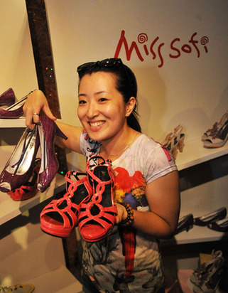 8月12日訊,8月10日,在上海世博園臺灣館,游客顧雯展示獲贈的皮。當日,上海世博園臺灣館迎來第40萬名游客,來自上海的顧雯成為這名幸運者。她獲贈了50雙臺灣品牌的。