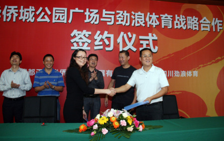 中國鞋網9月9日訊,2010年9月4日,勁浪體育與成都華僑城公園廣場舉行簽約儀式,雙方一致達成“體育公園戰略合作”協議,自此西南地區最大的體育概念公園,將落戶成都華僑城公園廣場。