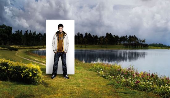 Q:這次的廣告大片有些創意,是在一個湖的邊上,并且人物后面還有一塊白的背景板,和大家解釋一下這個創意吧?