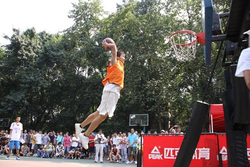 當然全場人氣最旺的環節還屬活動第二日下午進行的匹克“場上見英雄”扣籃大賽的城市決賽,在之前三場扣籃大賽晉級的選手被涌動的人群包圍在場地中央。2.5米的籃筐雖然高高在上,但在場上我們看到的是選手們自信的神情,感受到的是如虹的氣勢,轉體360°、胯下、大風車……“灌籃高手”各展絕技,除了籃筐,被他們征服的還有現場的觀眾,見識了平時只在NBA賽事集錦中才能看到的扣籃表演后,他們將尖叫和如雷的掌聲獻給了新誕生的扣壇“真英雄”。