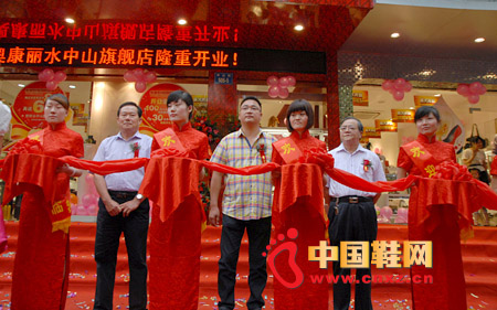 麗水百貨公司董事長李炎、奧康副總王振權、麗水職業技術學院汪建云院長等領導為奧康旗艦大店剪彩