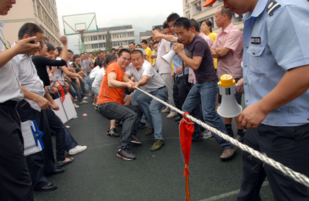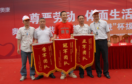 中國鞋網10月4日訊,9月27日下午,奧康員工拔河大賽在其總部生活小區操場隆重舉行,經過激烈比拼,來自生產戰線和后勤戰線的3支隊伍分獲冠、亞、季軍。公司副總王振權、徐曉杰和吳守忠等領導也出現在比賽現場并為各支隊伍加油鼓勁。