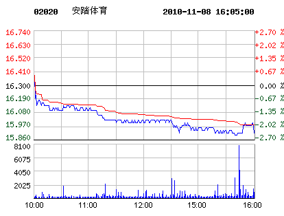 【中國(guó)鞋網(wǎng)-鞋企股市】11月08日安踏體育股票行情走勢(shì)