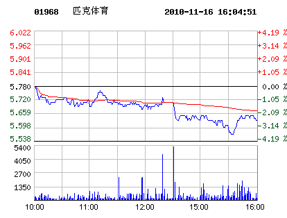 11月16日匹克體育股票行情走勢