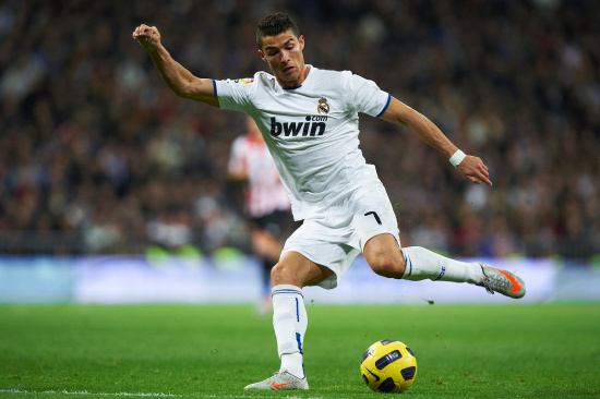 【中國鞋網(wǎng)-運動玩家】近來調(diào)子絕佳的C羅繼續(xù)著自己在西甲賽場上的進球“井噴”表演,在昨天皇馬主場對畢爾巴鄂競技隊的比賽中,C羅上演了本賽季一個月之內(nèi)的第二次帽子戲法,以15個進球繼續(xù)笑傲西甲射手榜,而這場比賽中C羅穿上了印有其簽名的新球靴CR Mercurial Vapor SuperFly II,C羅也正如球靴奪人眼球的雪豹紋外觀一樣成為了全場比賽矚目的焦點。